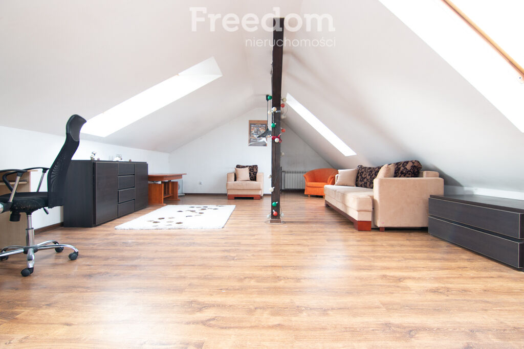 -Wysokie urządzone poddasze użytkowe z czterema oknami dachowymi