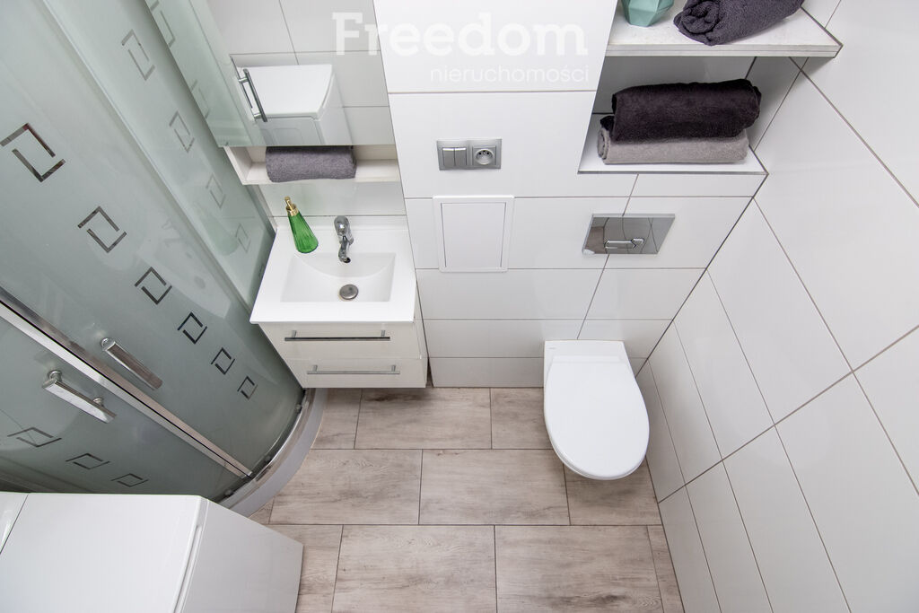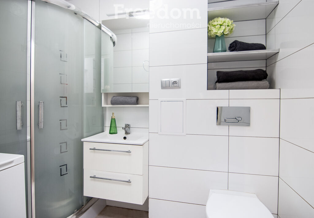 *łazienki wyposażonej w prysznic oraz toaletę,